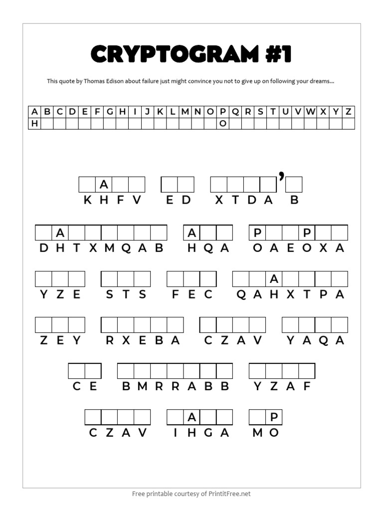 Free Printable Cryptograms Print it Free
