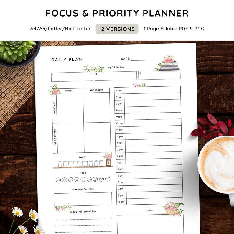 Daily productivity planner half letter printable daily etsy Artofit