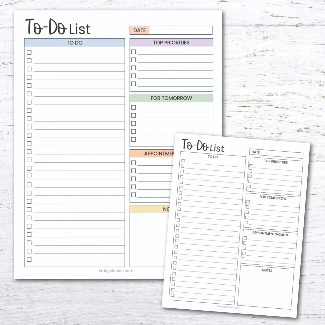 Daily to Do List 2 Versions Fillable Printable PDF Task Management