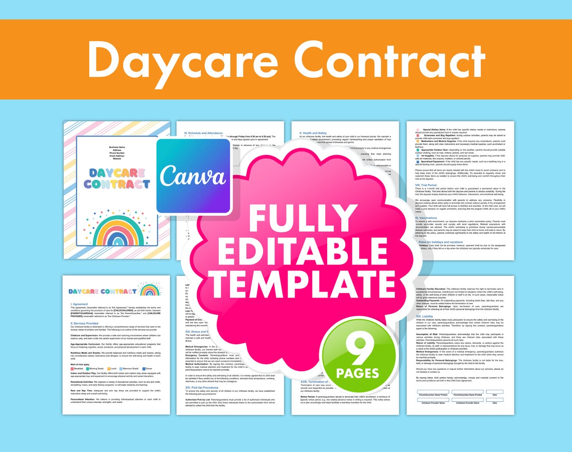 Daycare Contract Template Ideal for Preschools Childcare Businesses