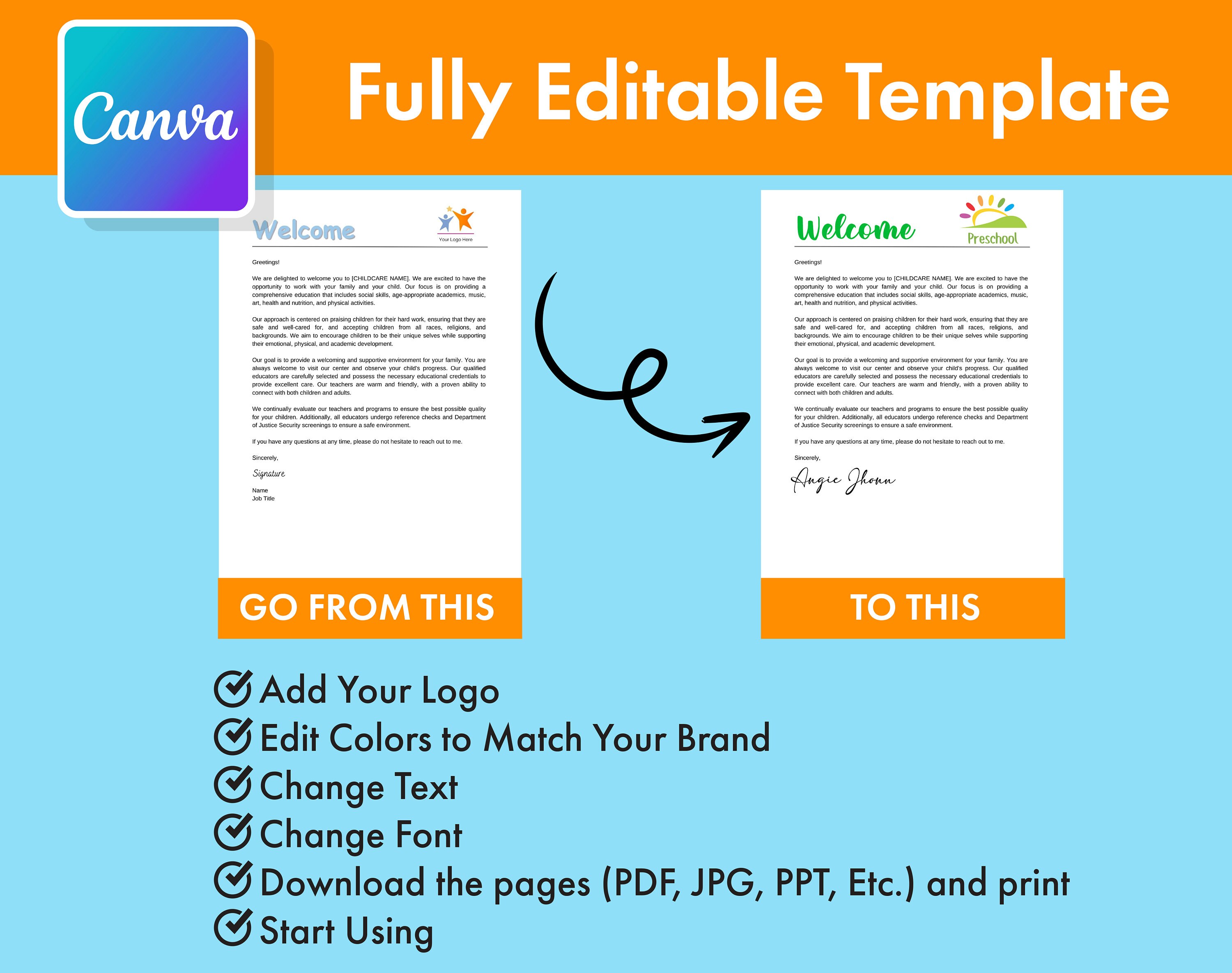Editable Home Daycare Childcare contract preschool agreement The