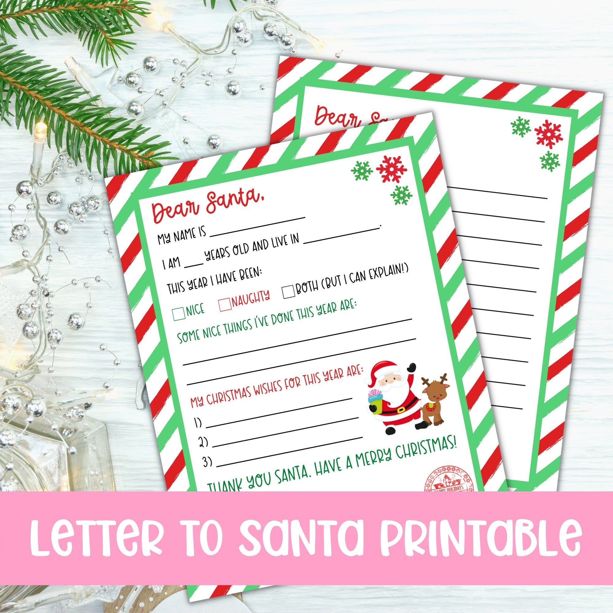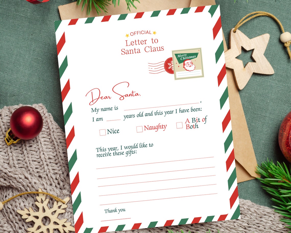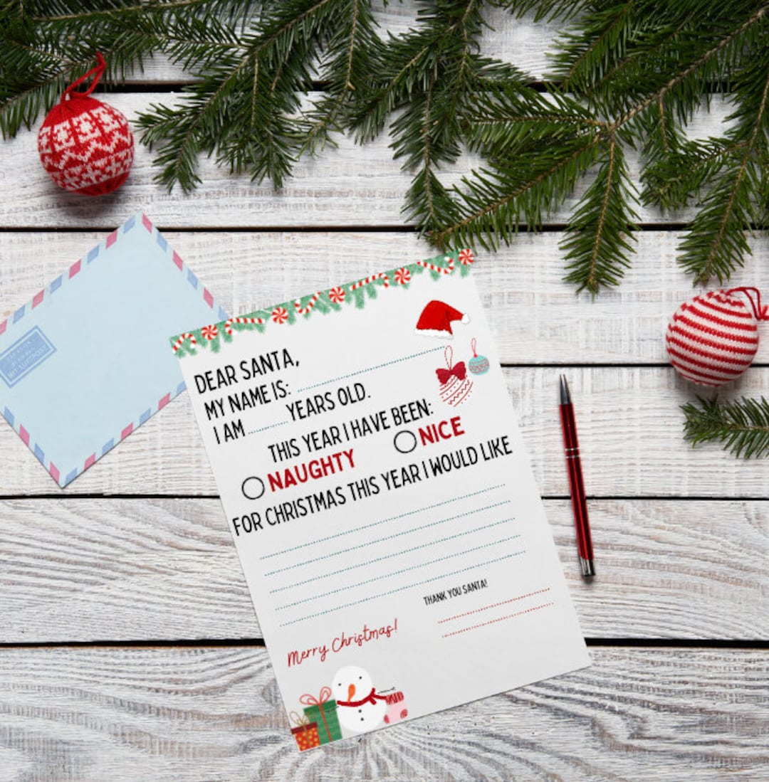 Letter to Santa Dear Santa Letter Christmas Wish List Naughty or