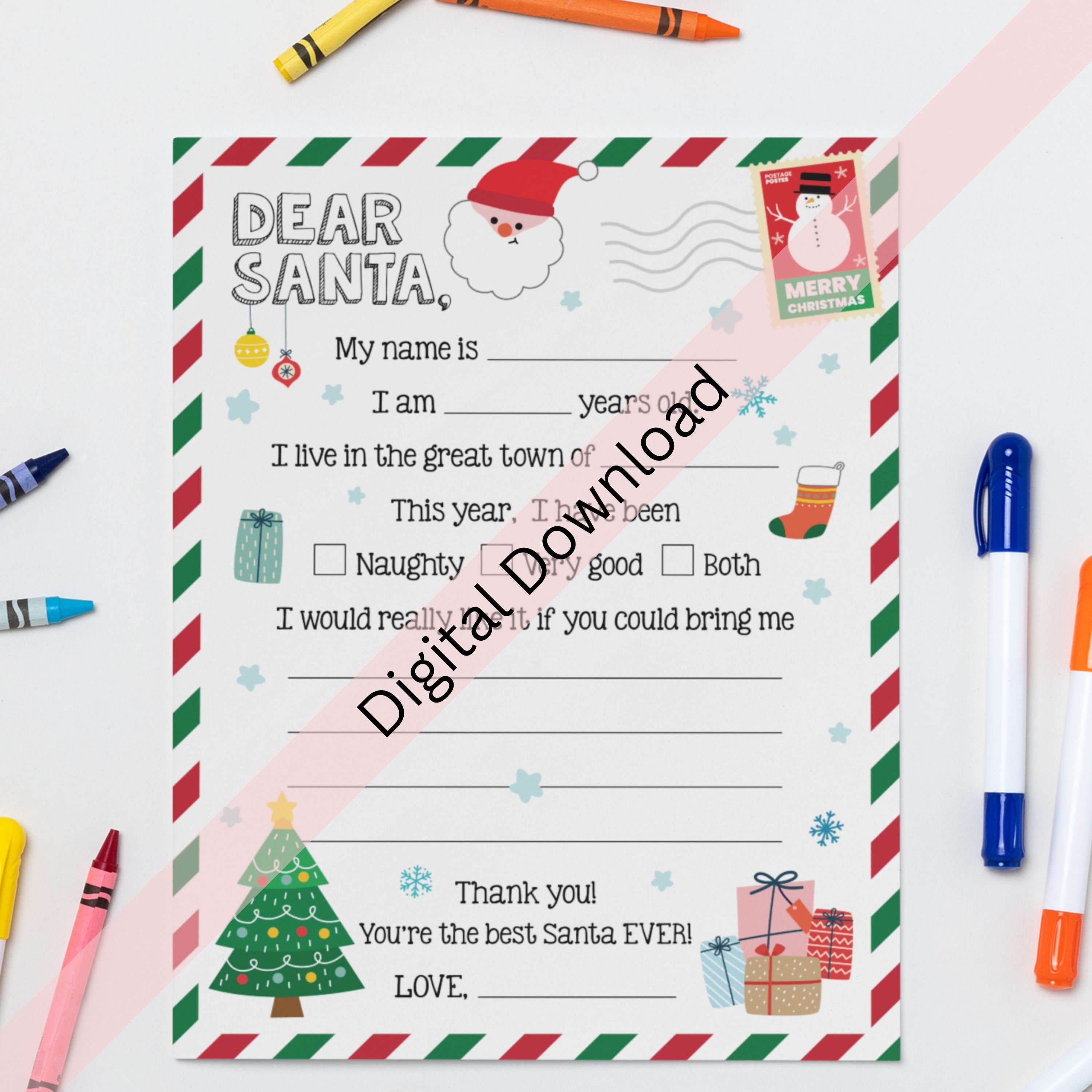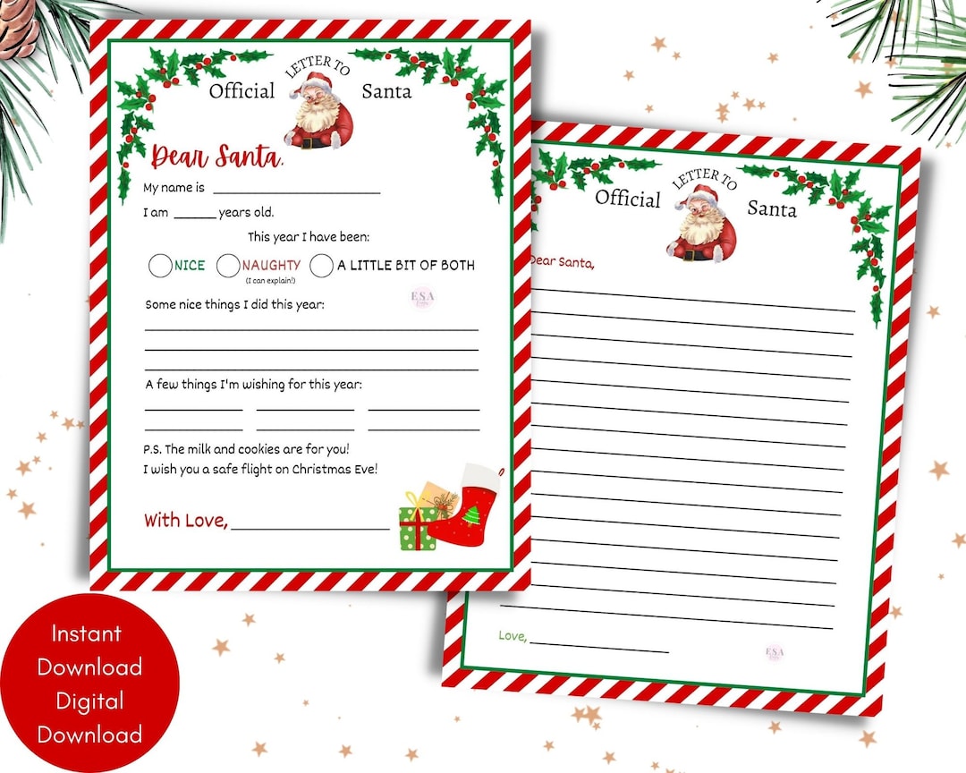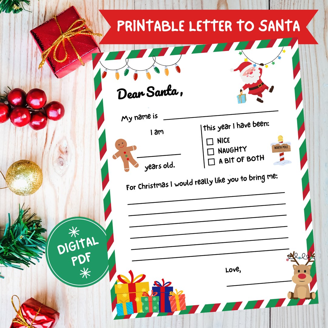 Printable Dear Santa Letter Template Instant Download Letter to