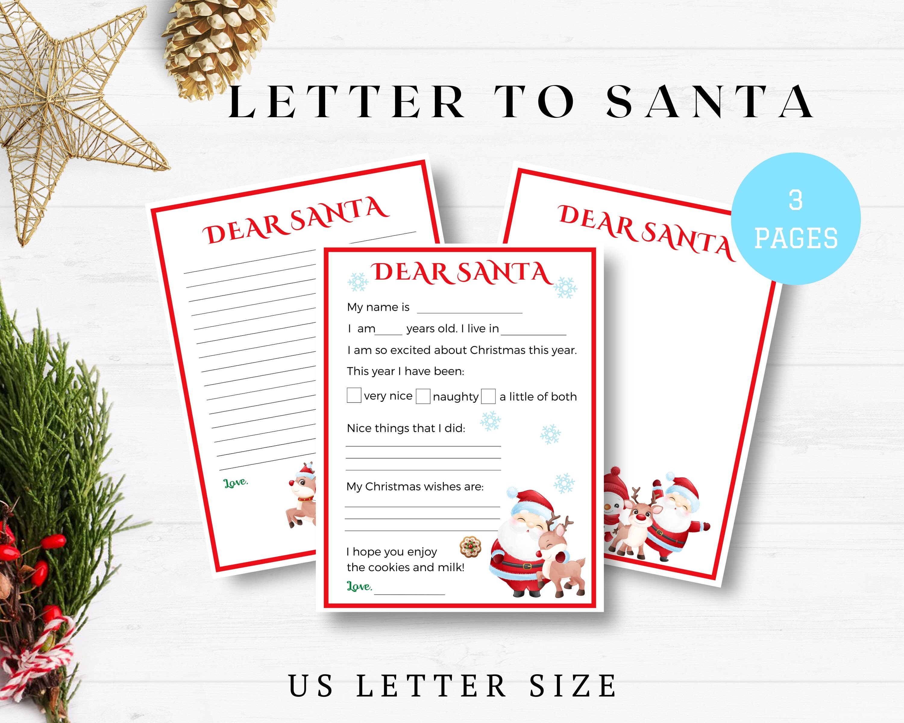 PRINTABLE Letter to Santa / Dear Santa / Wishlist / Santa Claus Letter