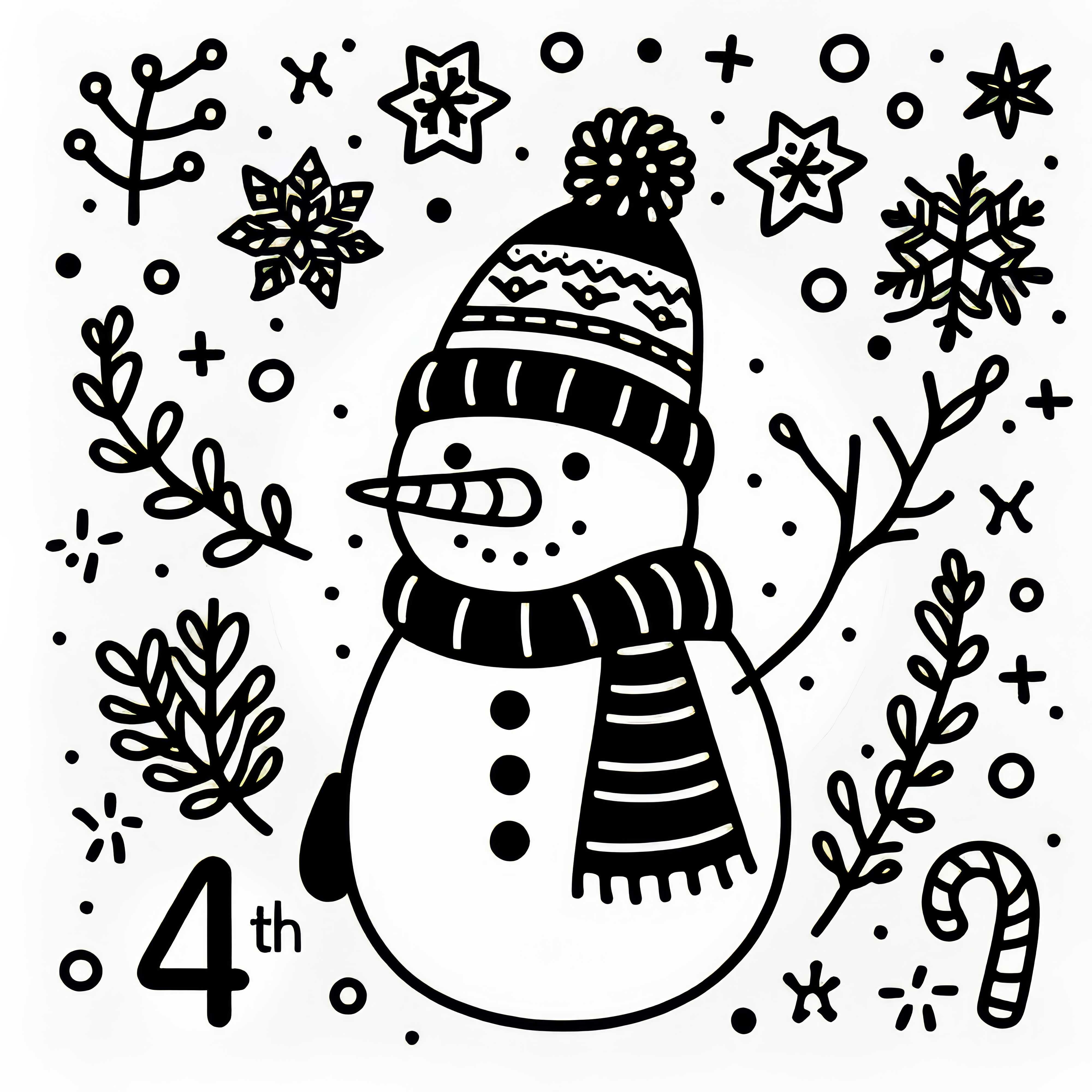 Free coloring page of a snowman for December 4th in the Advent calendar