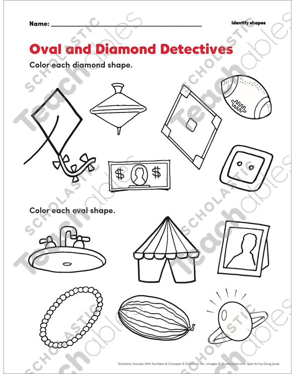 Oval and Diamond Detectives (Identify Shapes) Printable Skills