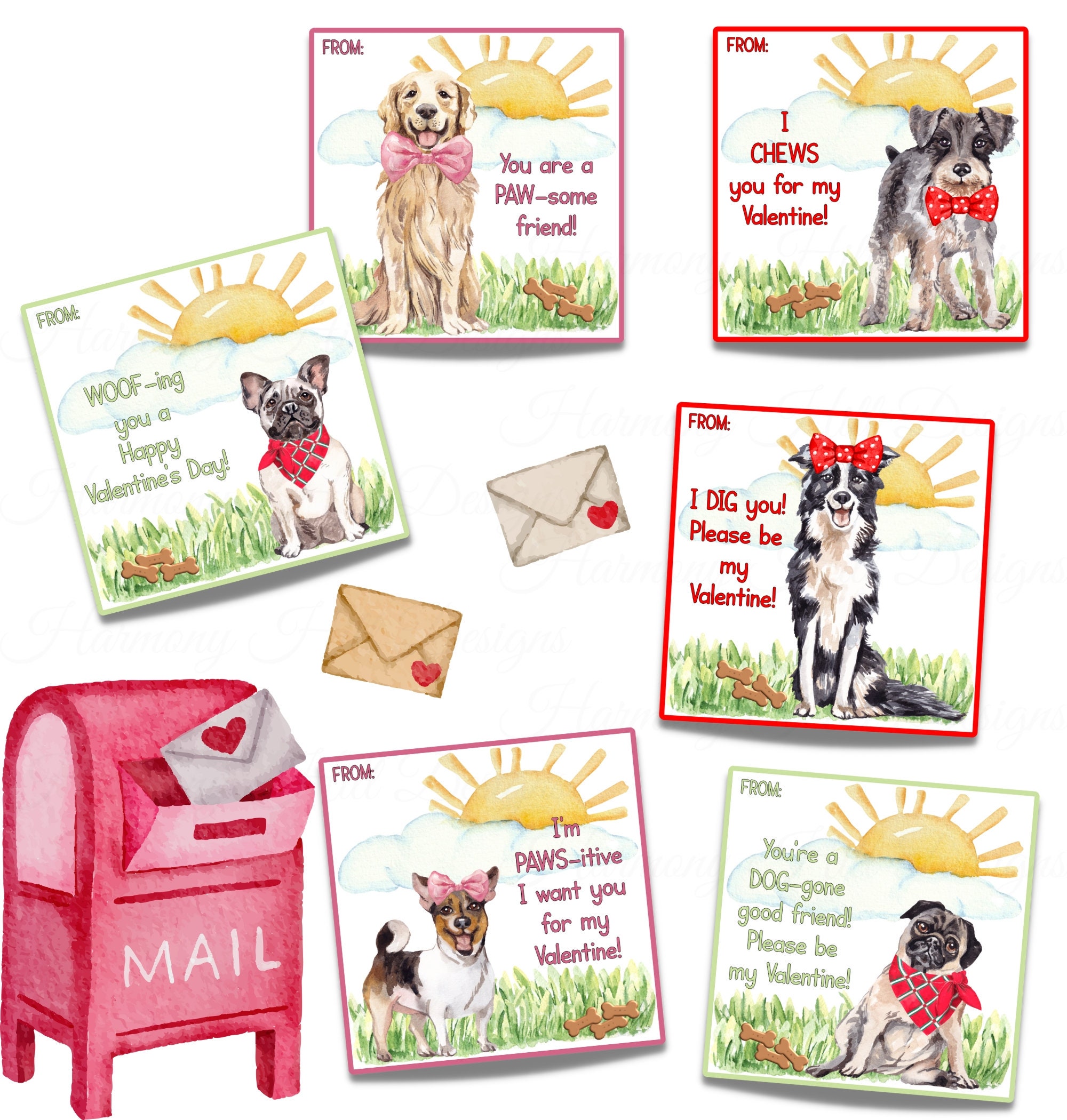 EDITABLE Printable Dog Valentine Cards Valentines Day Cards Valentine