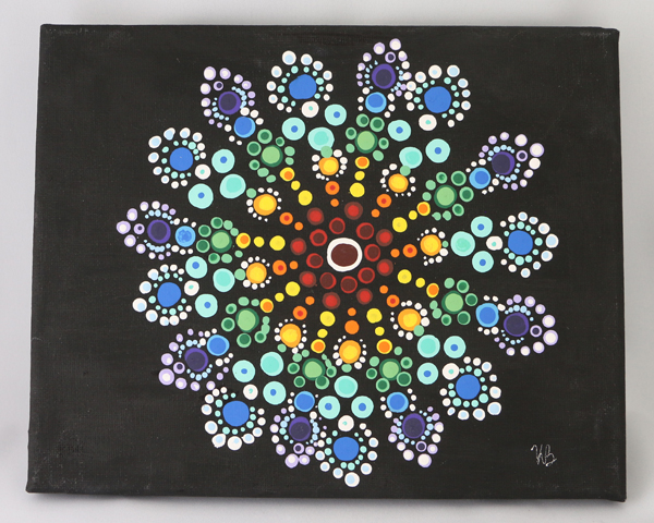 Vibrant Dot Mandala on Black Stretched Canvas 10 quot X 10 quot in Shades of