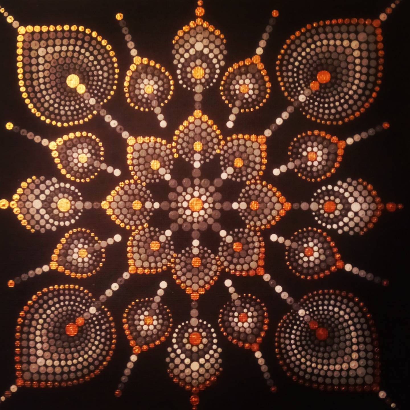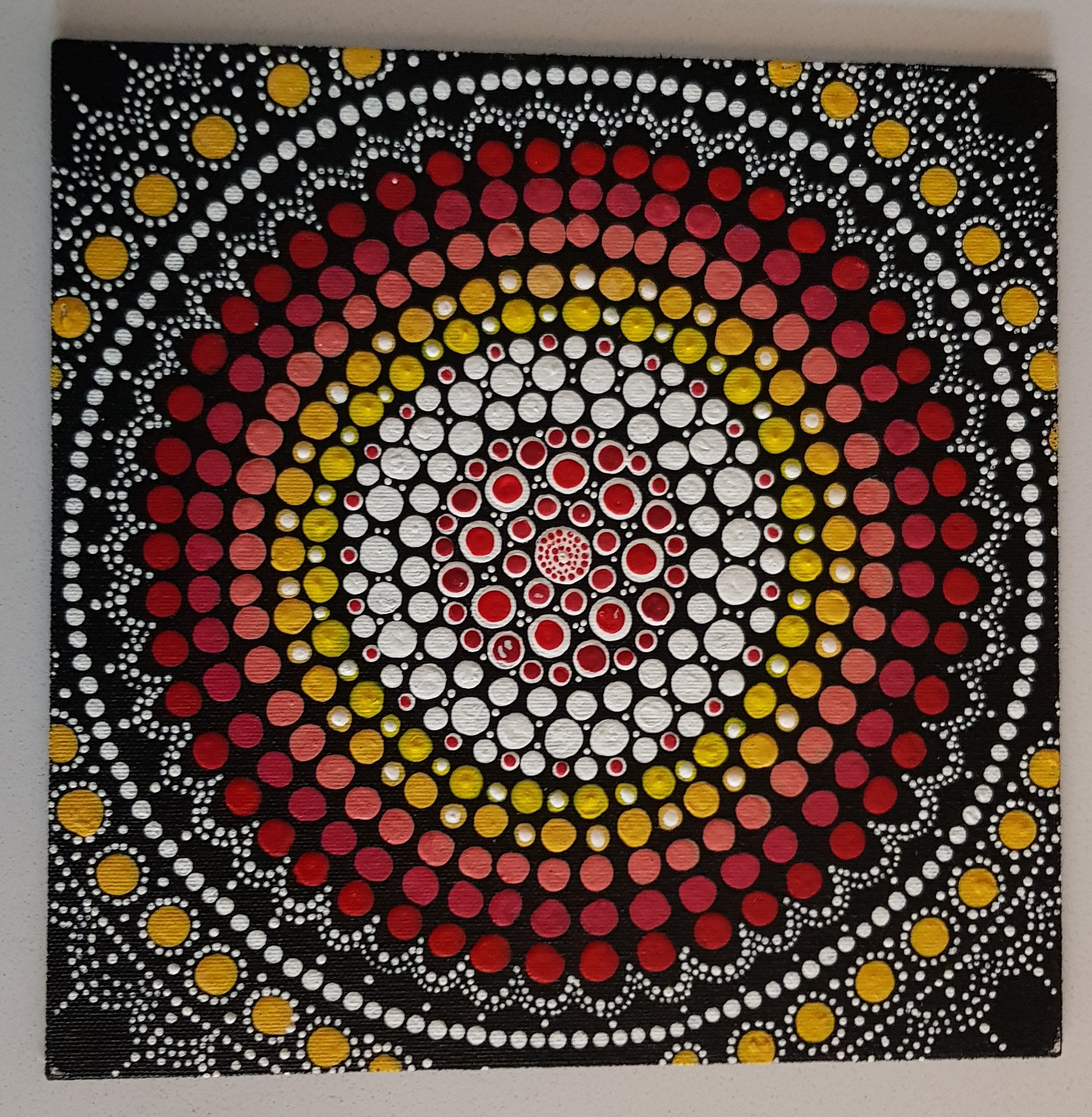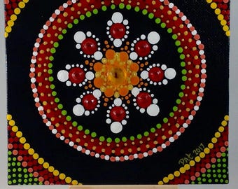 Original Handpainted Dot Mandala 6 X 6 Canvas Tangerine Flower Etsy