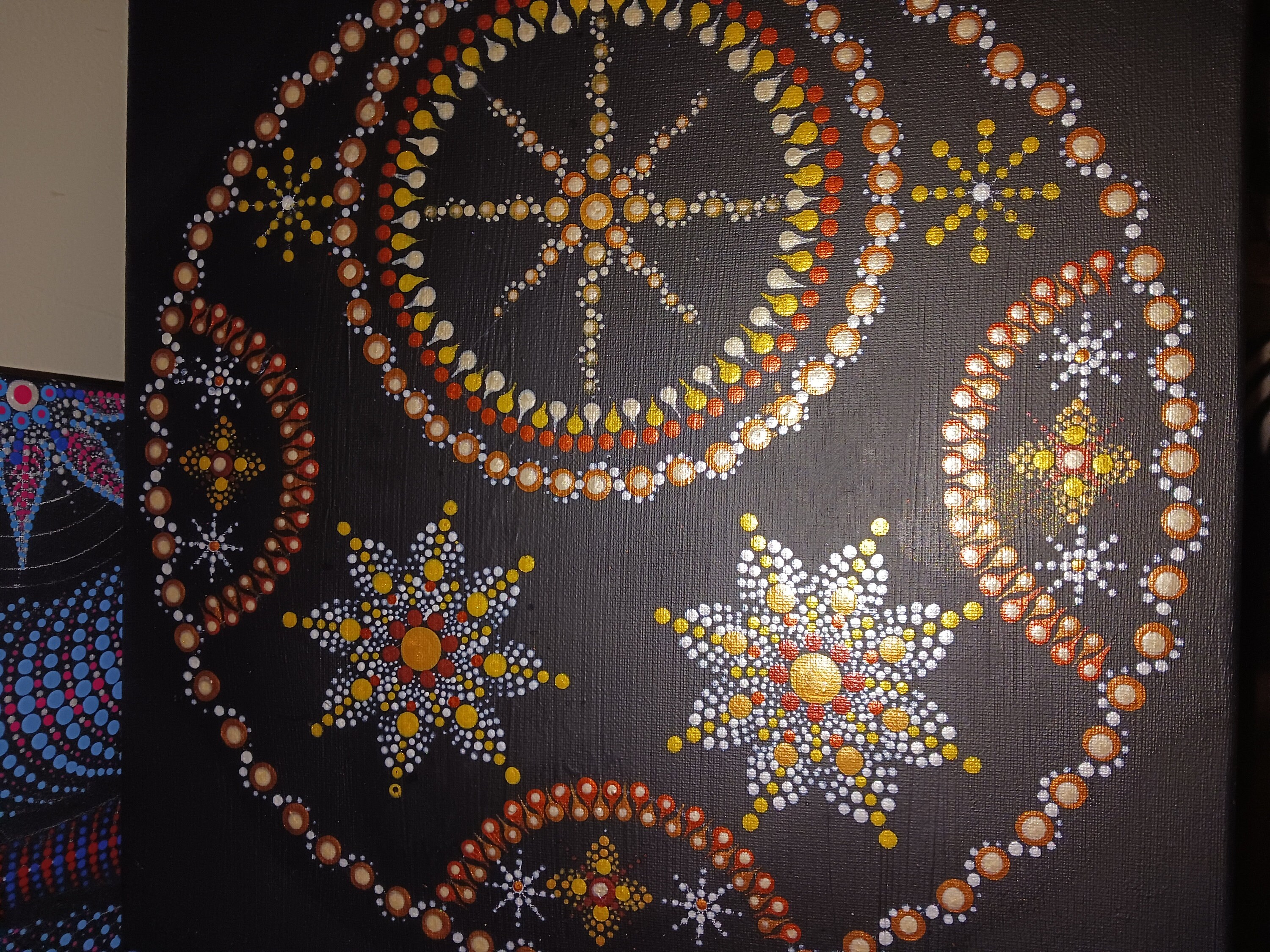 Mandala Hand Dotted Painting Original One of a Kind Stunning Gold