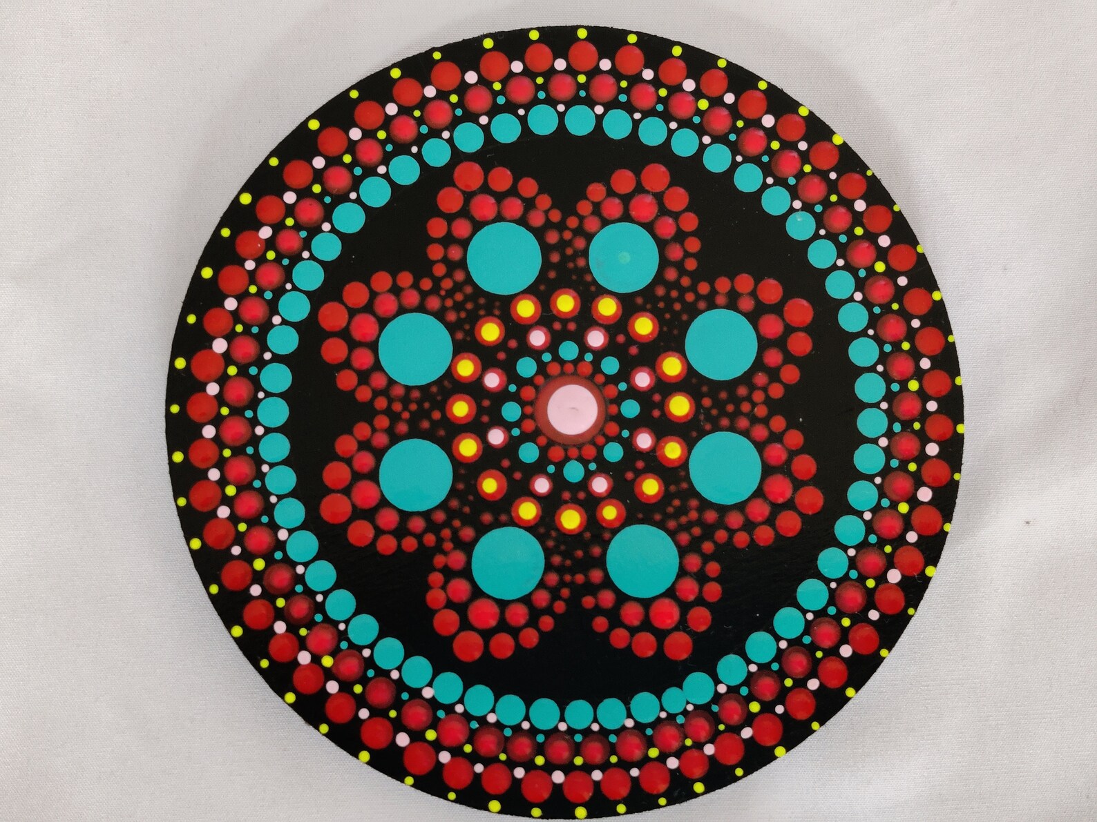 Dot Mandala Acrylic Painting on Wooden Disk Hand Painted Dot Painting