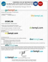UK Lexham certificate of motor insurance Word and PDF template Mytempl