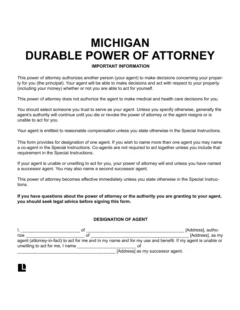Free Printable Michigan Durable Power of Attorney Form PDF Word
