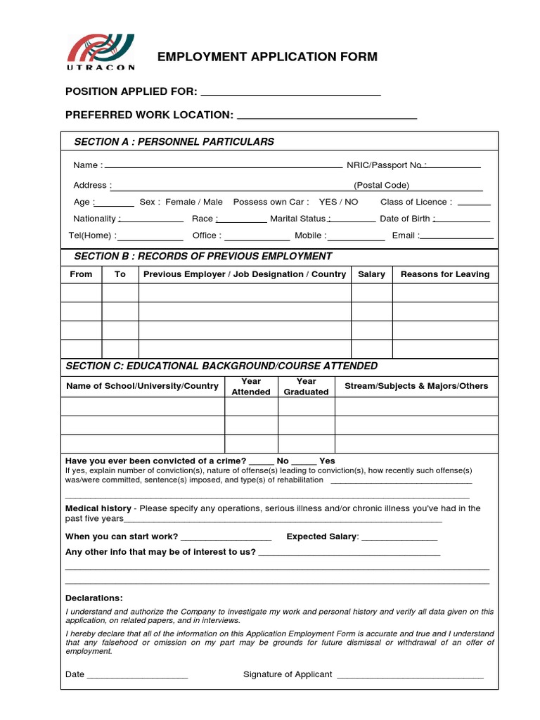Here are some of the images for Free Printable Employment Application Form that we found in our website database.