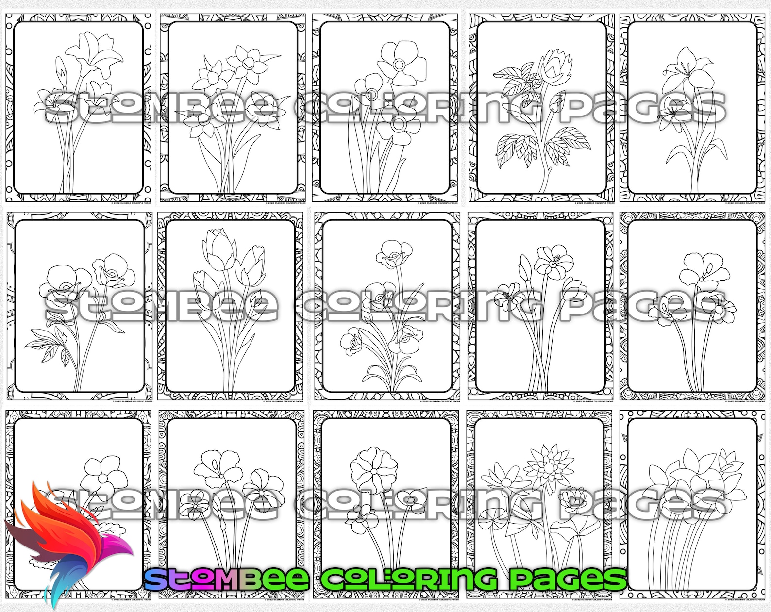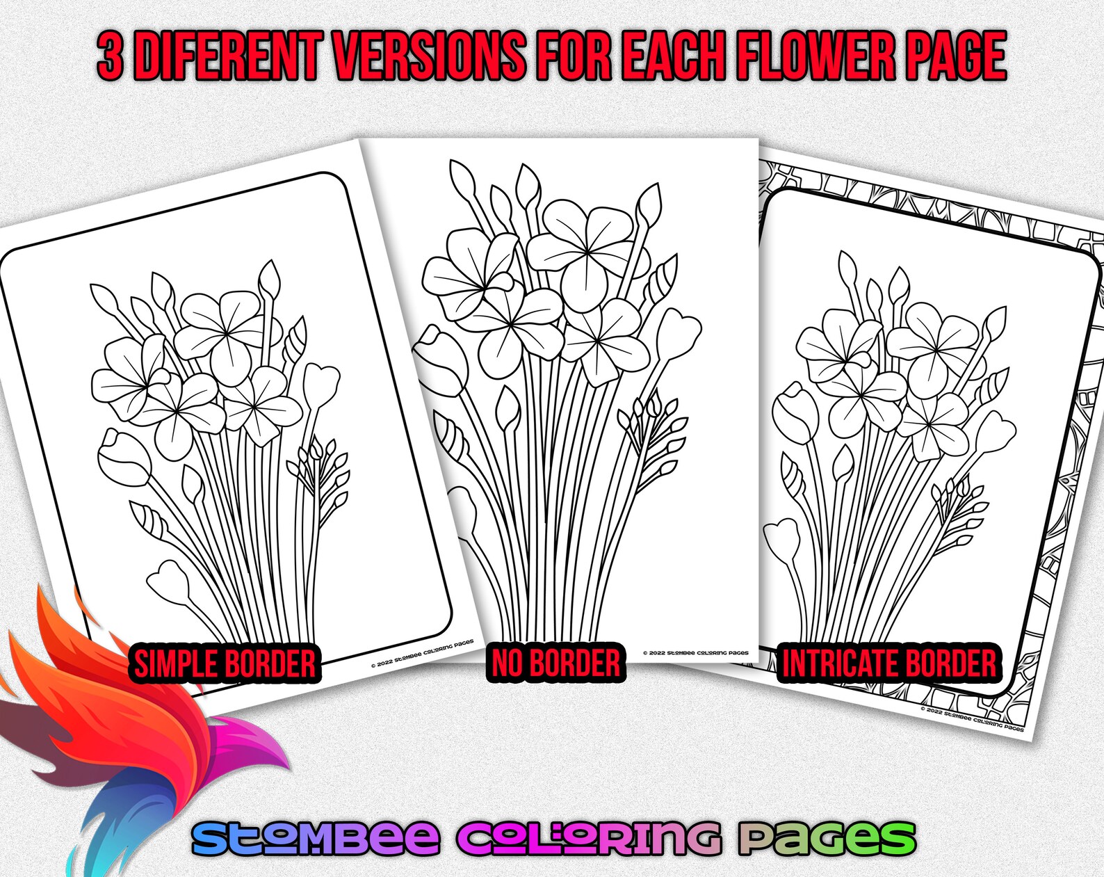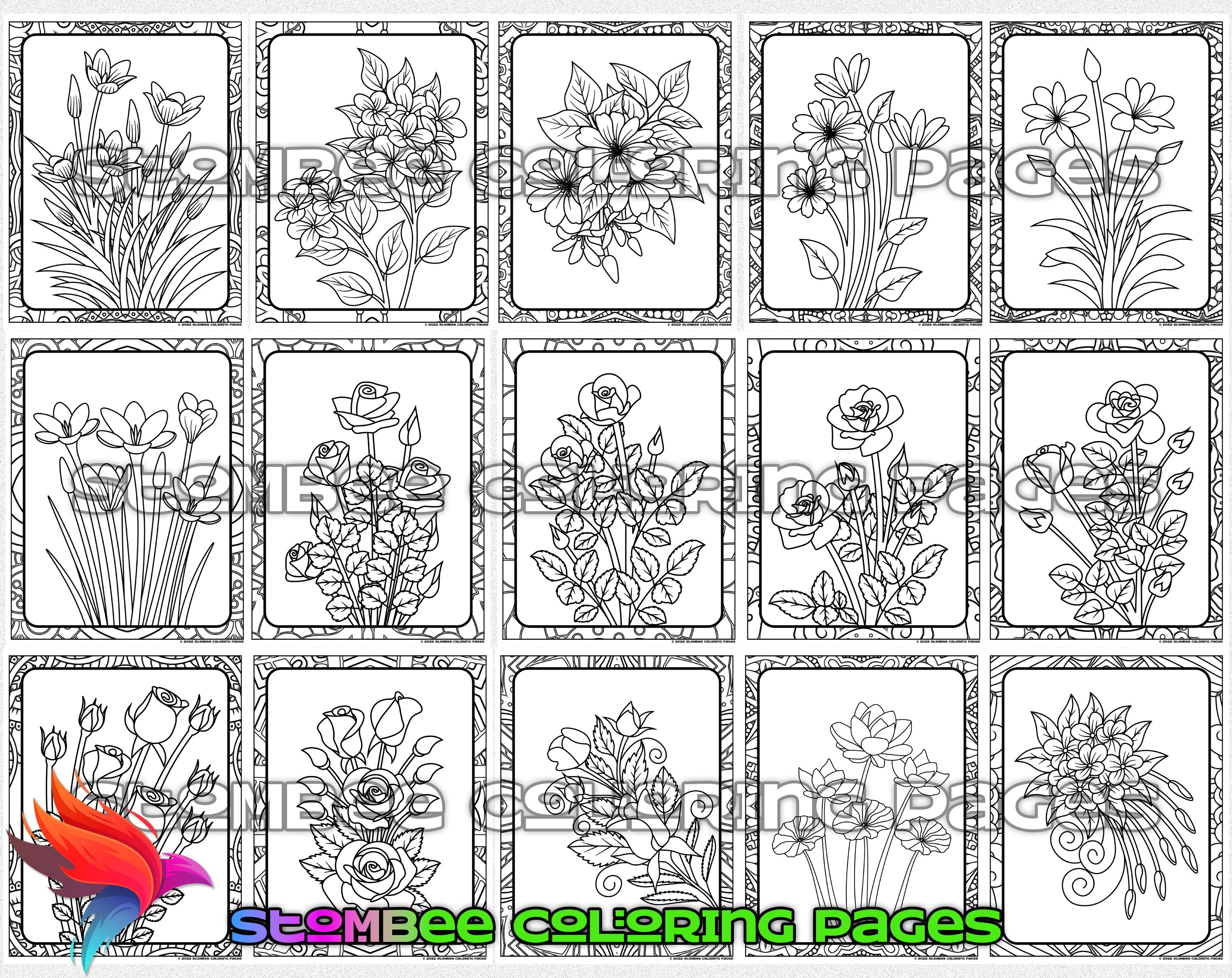 90 Floral Coloring Pages for Adults Printable Flowers Etsy