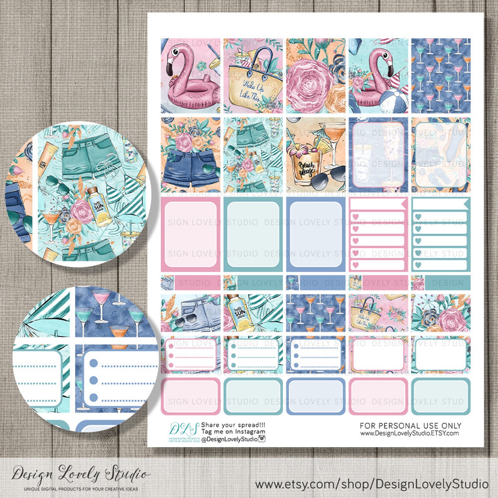 PRINTABLE Beach Planner Stickers Summer Weekly Planner Etsy