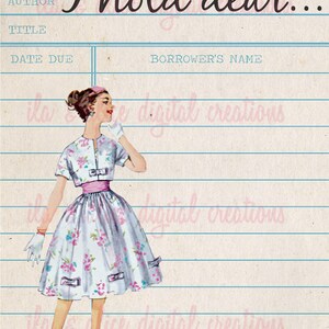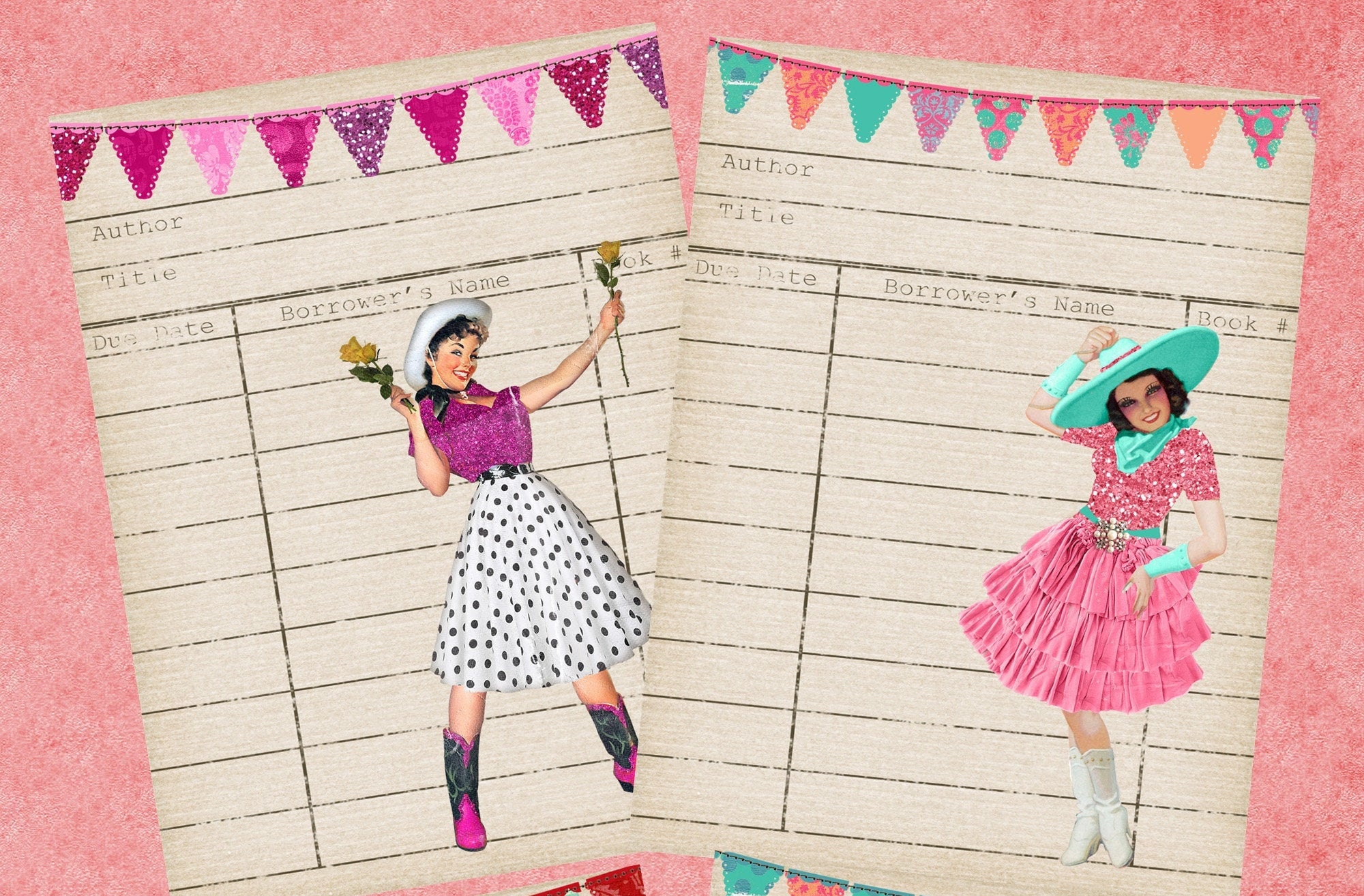 Set of 4 Retro Cowgirl Library Cards Collage Sheet Clip Art for