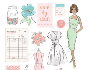 Printable SEW FASHIONABLE Stickers digital File Instant Download retro