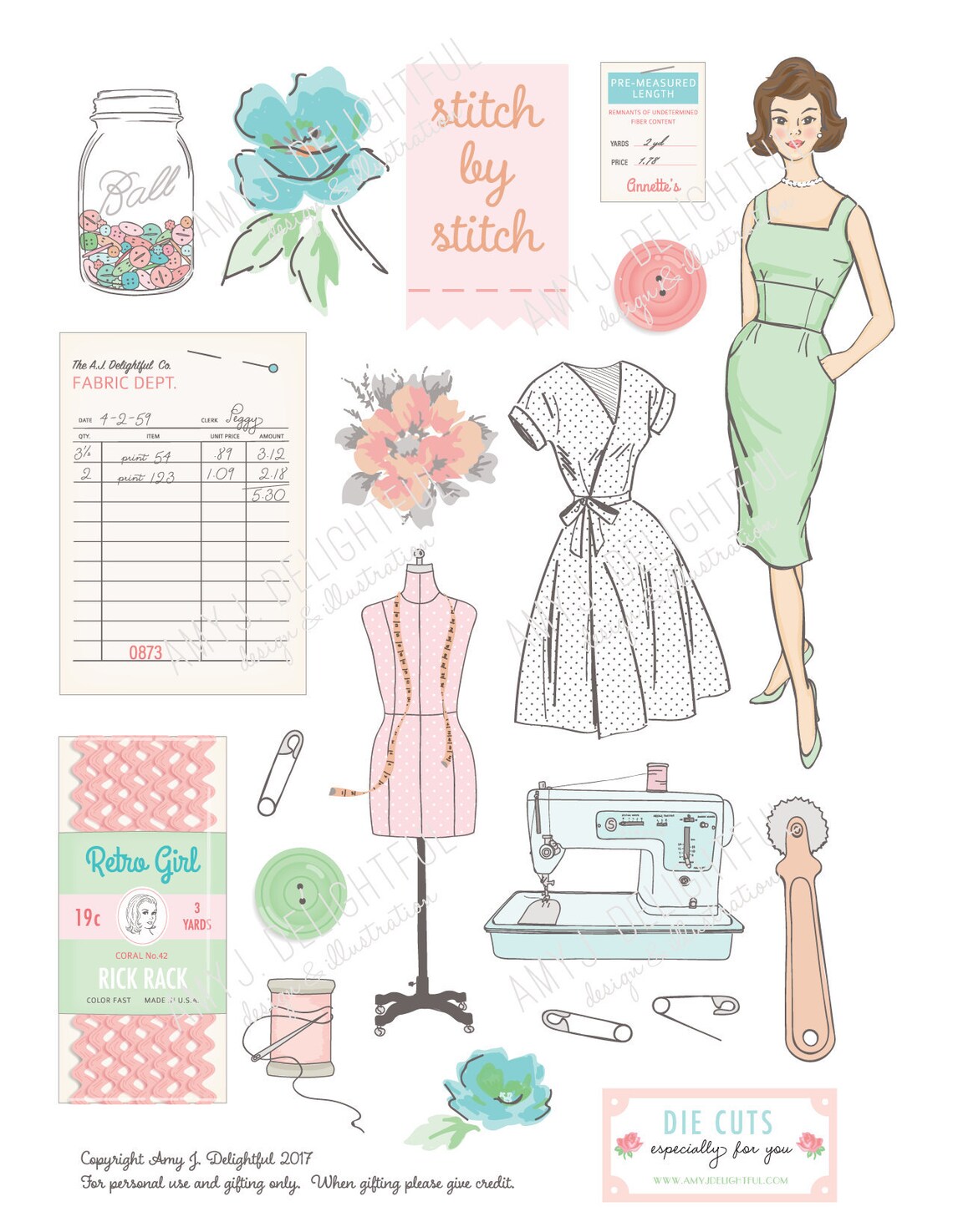 Printable SEW FASHIONABLE Die Cuts 2 Instant Download Etsy
