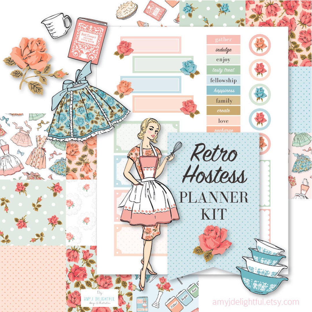 Printable Retro Hostess Planner Kit digital File Instant Download die