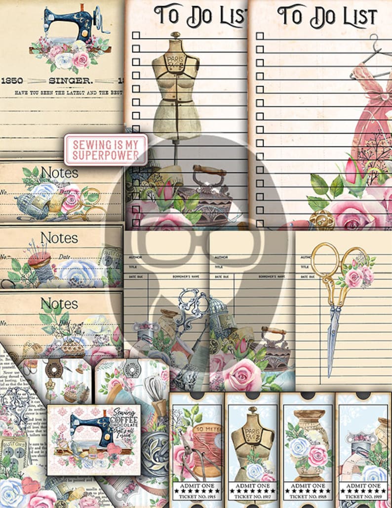 Sewing Junk Journal Printables Sewing Digital Paper 40pg Etsy