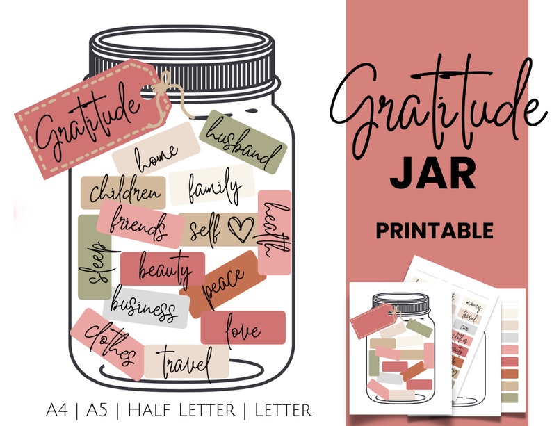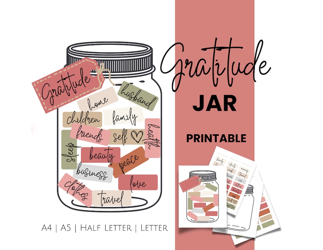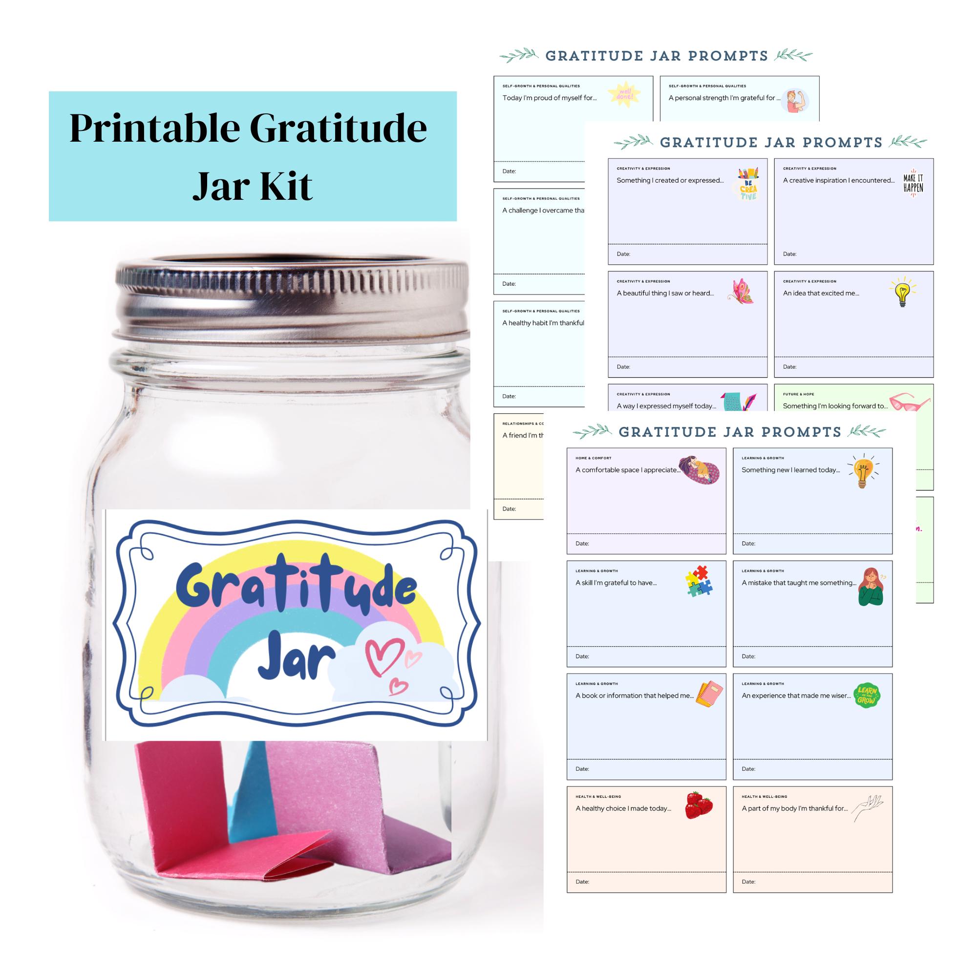 Printable Gratitude Jar Kit Prompts Labels Editable in Canva DIY
