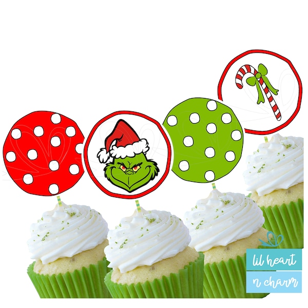 Grinch Inspired Treat Toppers Grinch Cupcakes Grinch party Etsy