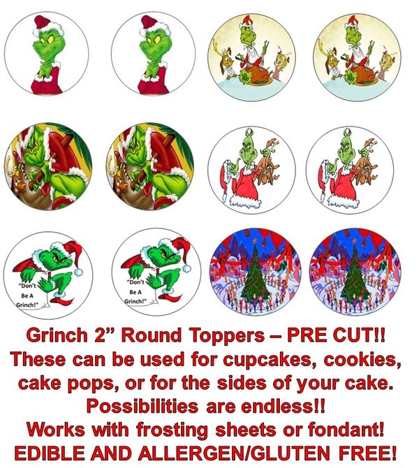 Holiday Grinch Christmas Edible Cupcake Toppers Grinch christmas