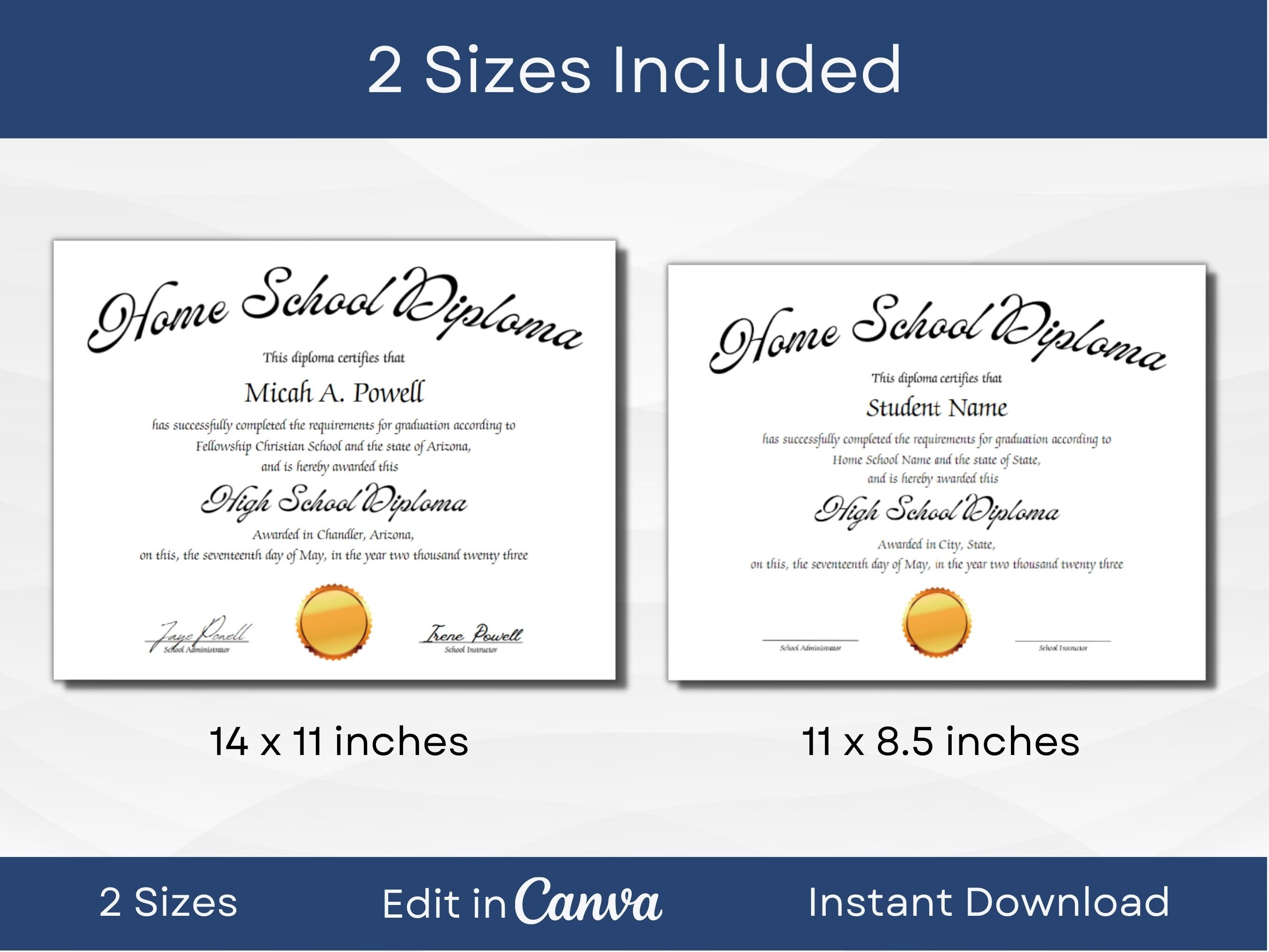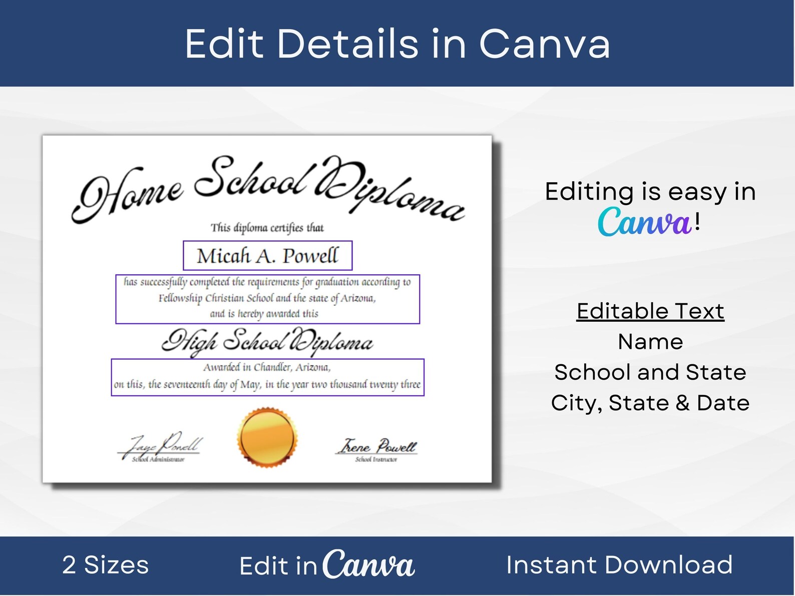 Printable Homeschool Diploma Template Editable High School Diploma 8