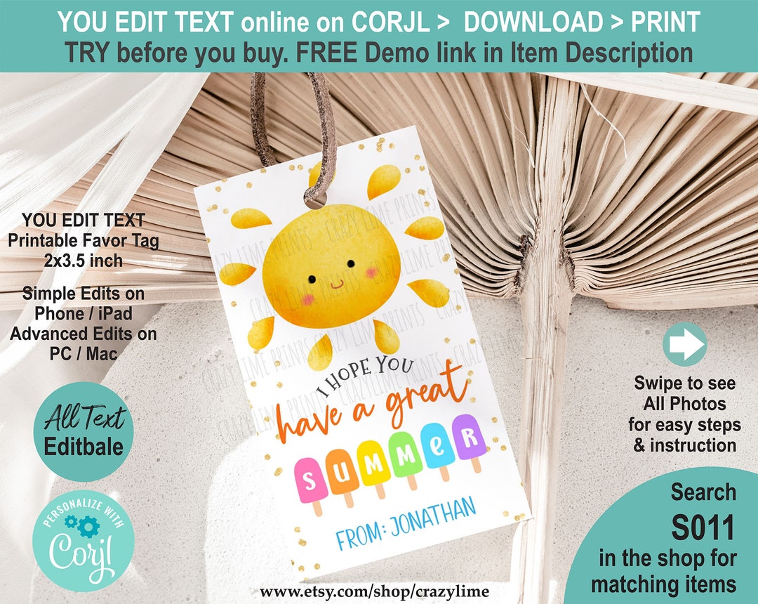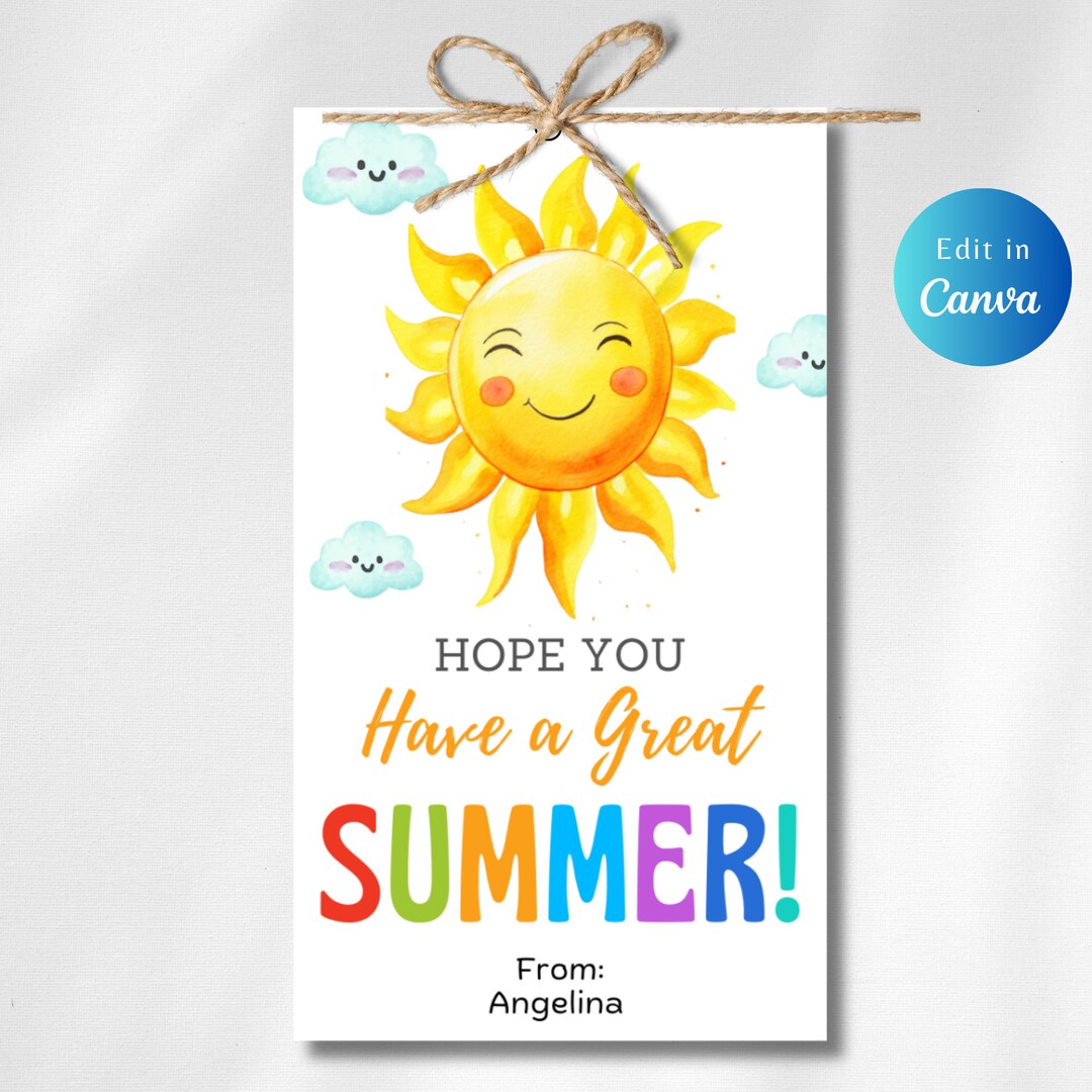 EDITABLE Happy Sun Summer Gift Tag Have A Great Summer Last Day of