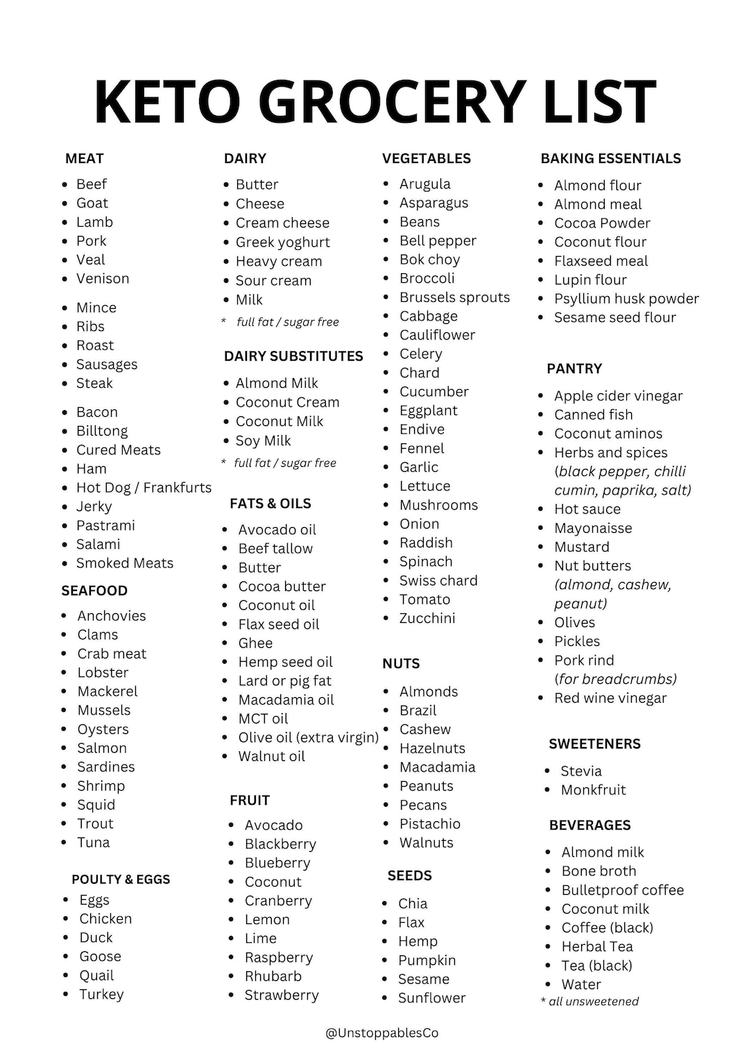 Keto Diet Food List Printable