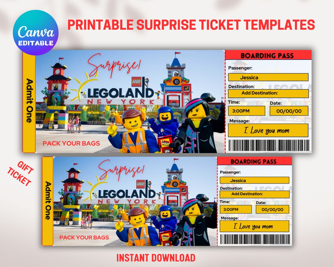 Printable LEGOLAND Surprise Trip Reveal Tickets editable Gift Etsy