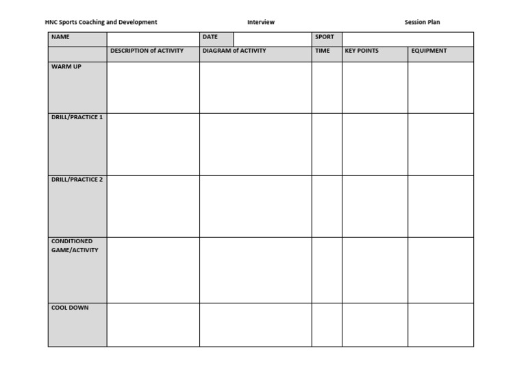 Hnc Sports Coaching and Development Interview Session Plan PDF