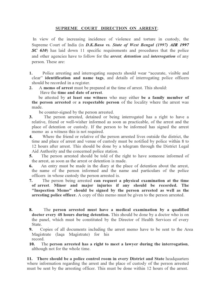 D K Basu Guidelines On Arrest Download Free PDF Interrogation Arrest