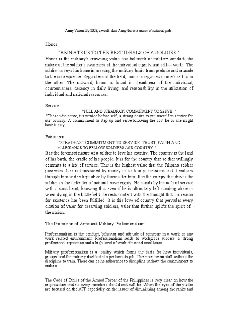 quot Being True To The Best Ideals of A Soldier quot : quot Full and Steadfast