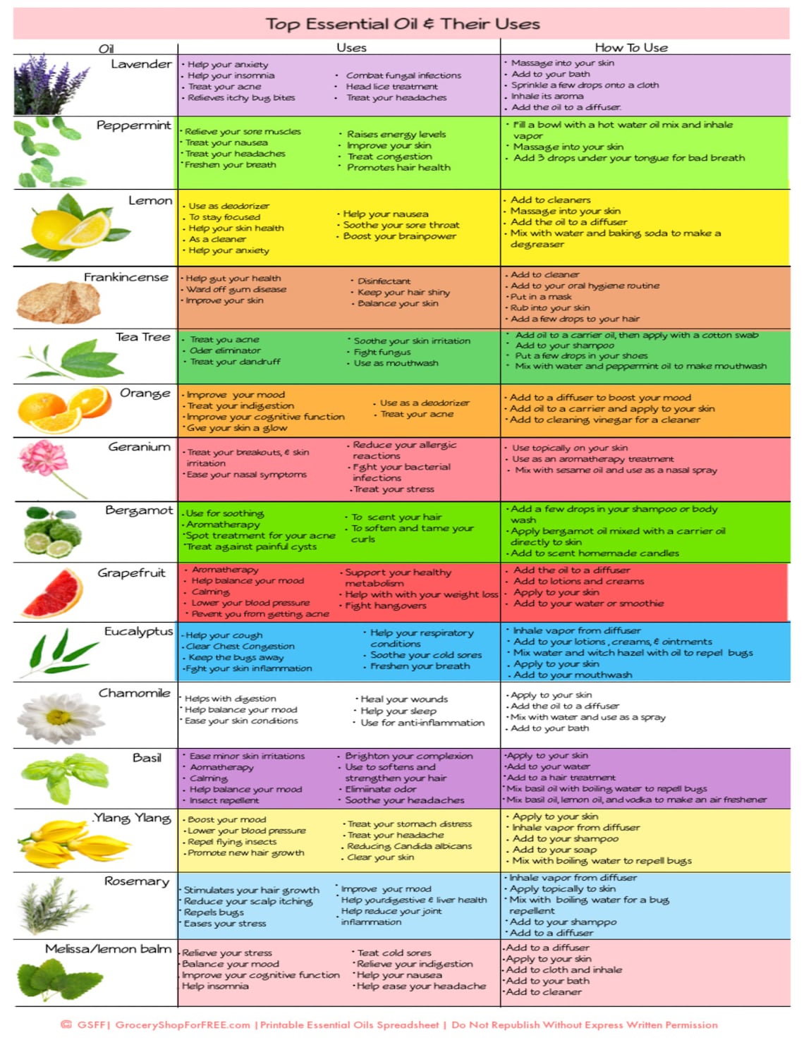 Free Printable List Of Essential Oils And Their Uses