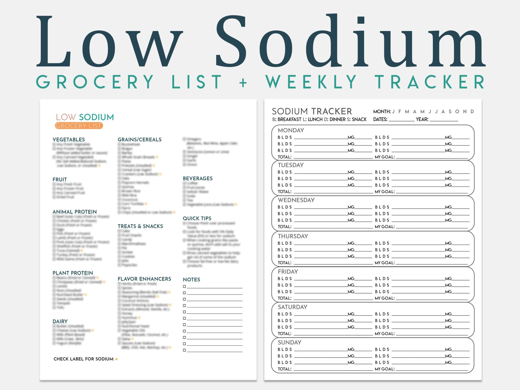 Free Printable Low Sodium Food List Etsy