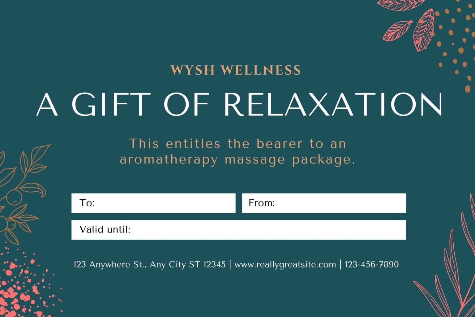 Massage gift voucher gift certificate template printable and editable