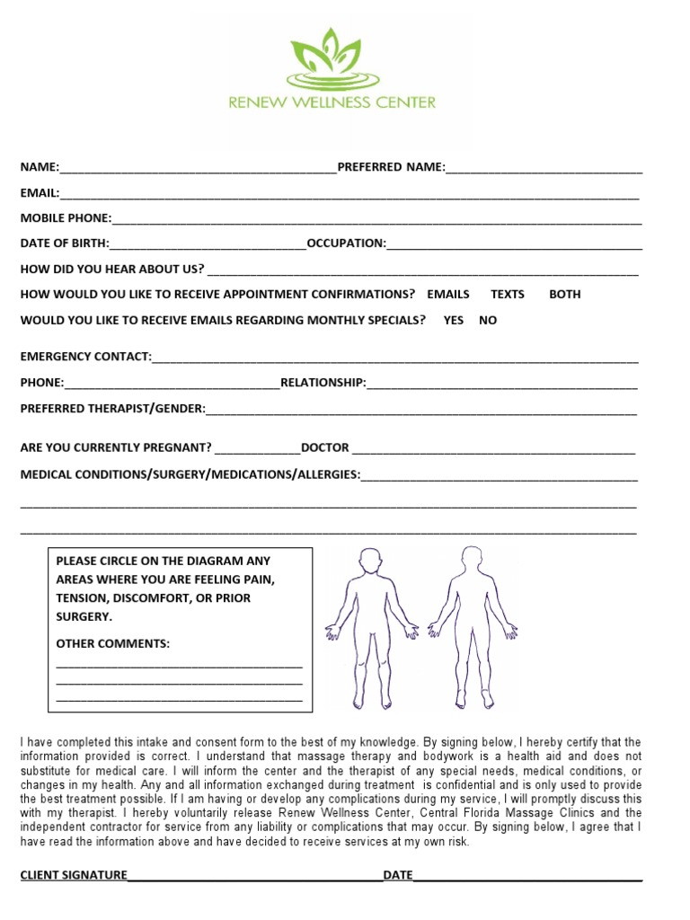 59 Best Massage Intake Forms for any Client Printable Templates
