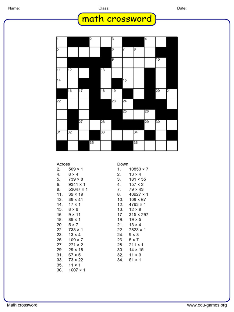 Math Crossword Puzzles ONLINE Games Worksheets