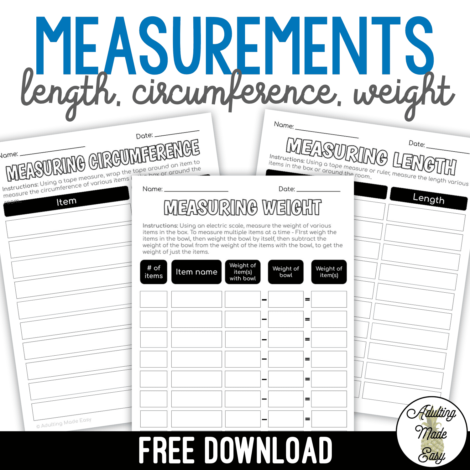 Free Printable Measurement Worksheets
