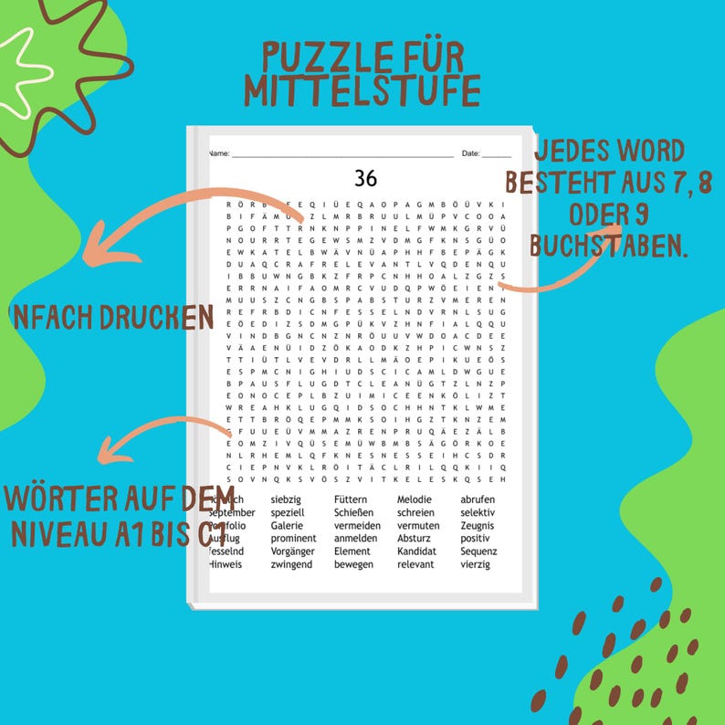 German Word Search Puzzle Book: Beginner to Difficult (PDF Download) Etsy