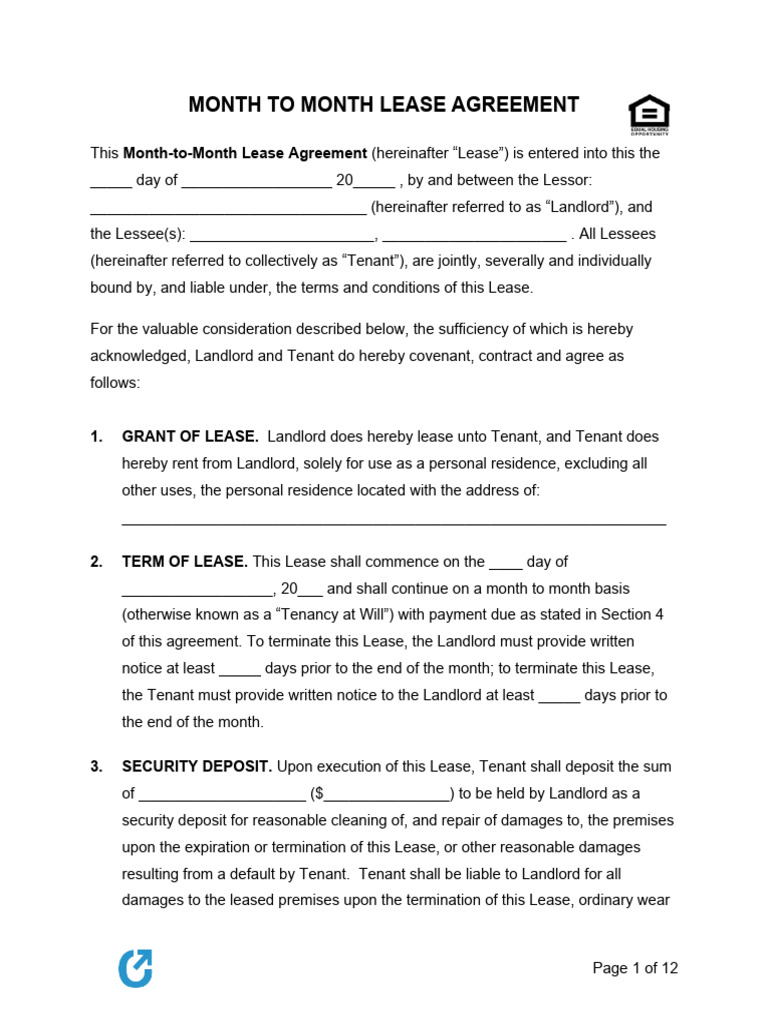 Month to Month Lease Agreement Download Free PDF Lease Leasehold