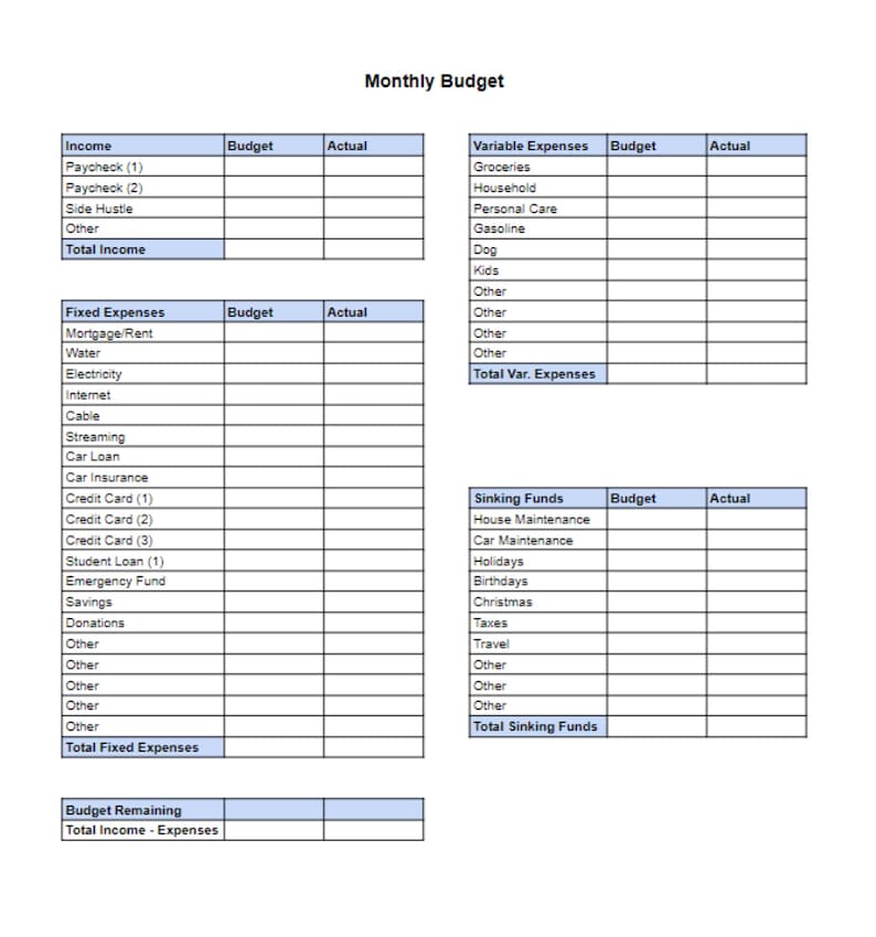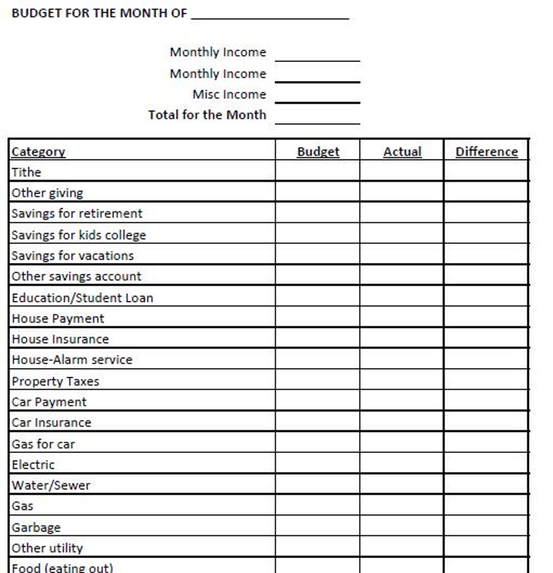 Monthly Budget Blank Monthly Budget Monthly Expenses Monthly Income