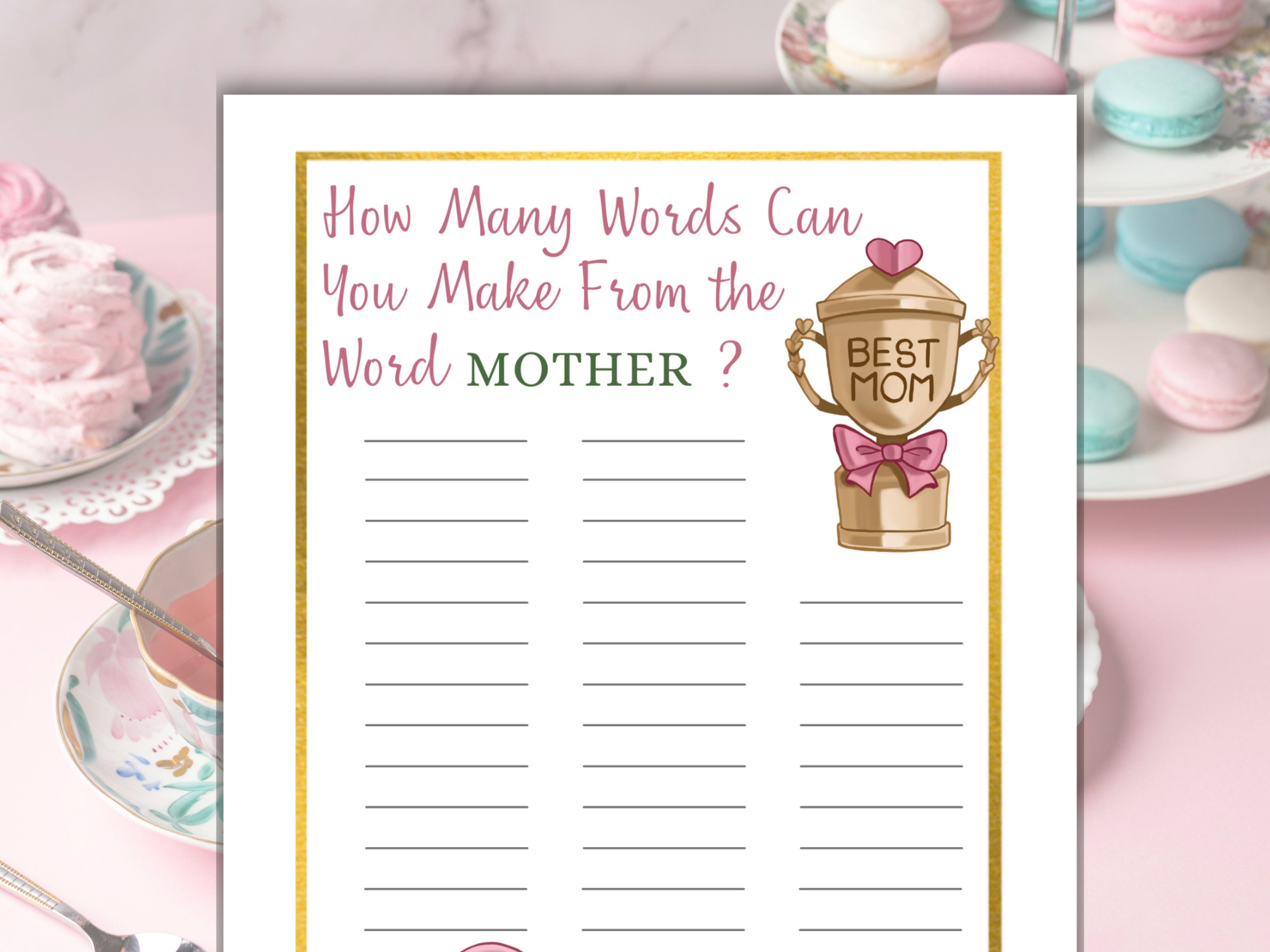 Mother s Day Game Printable Mothers Day Party Game for Kids and Adults