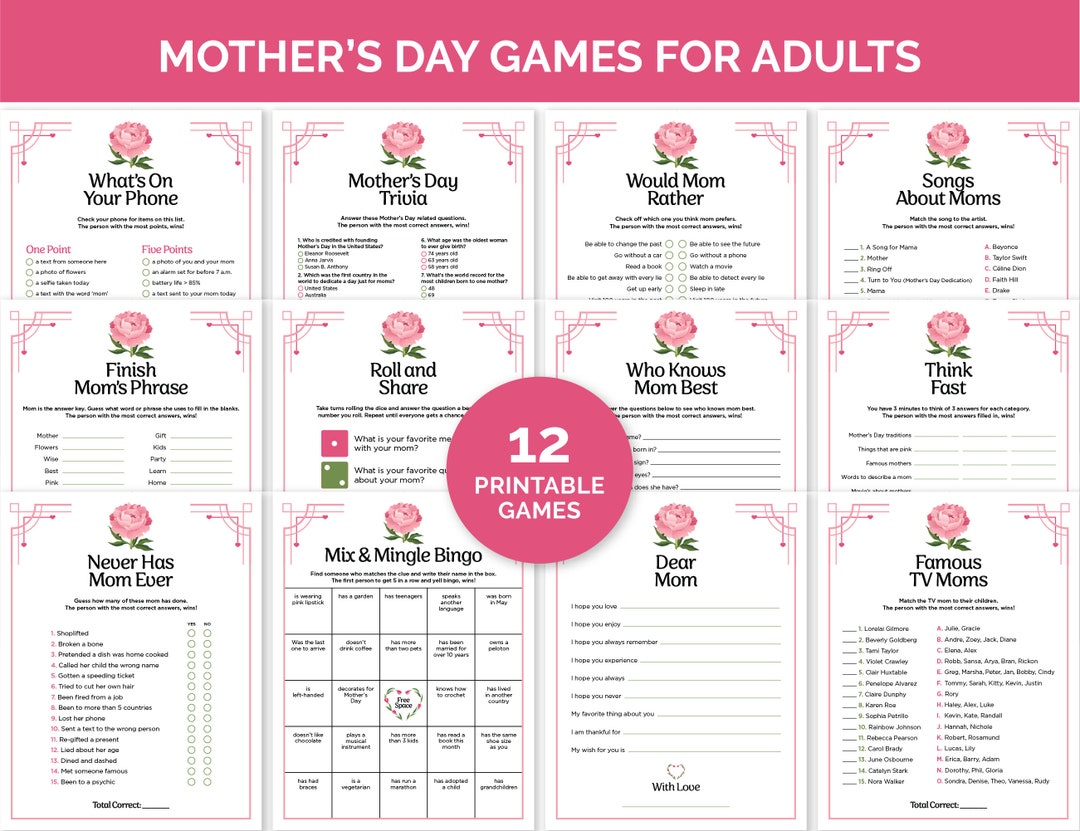 Mothers Day Printable Game Bundle for Kids and Adults Mother s Day