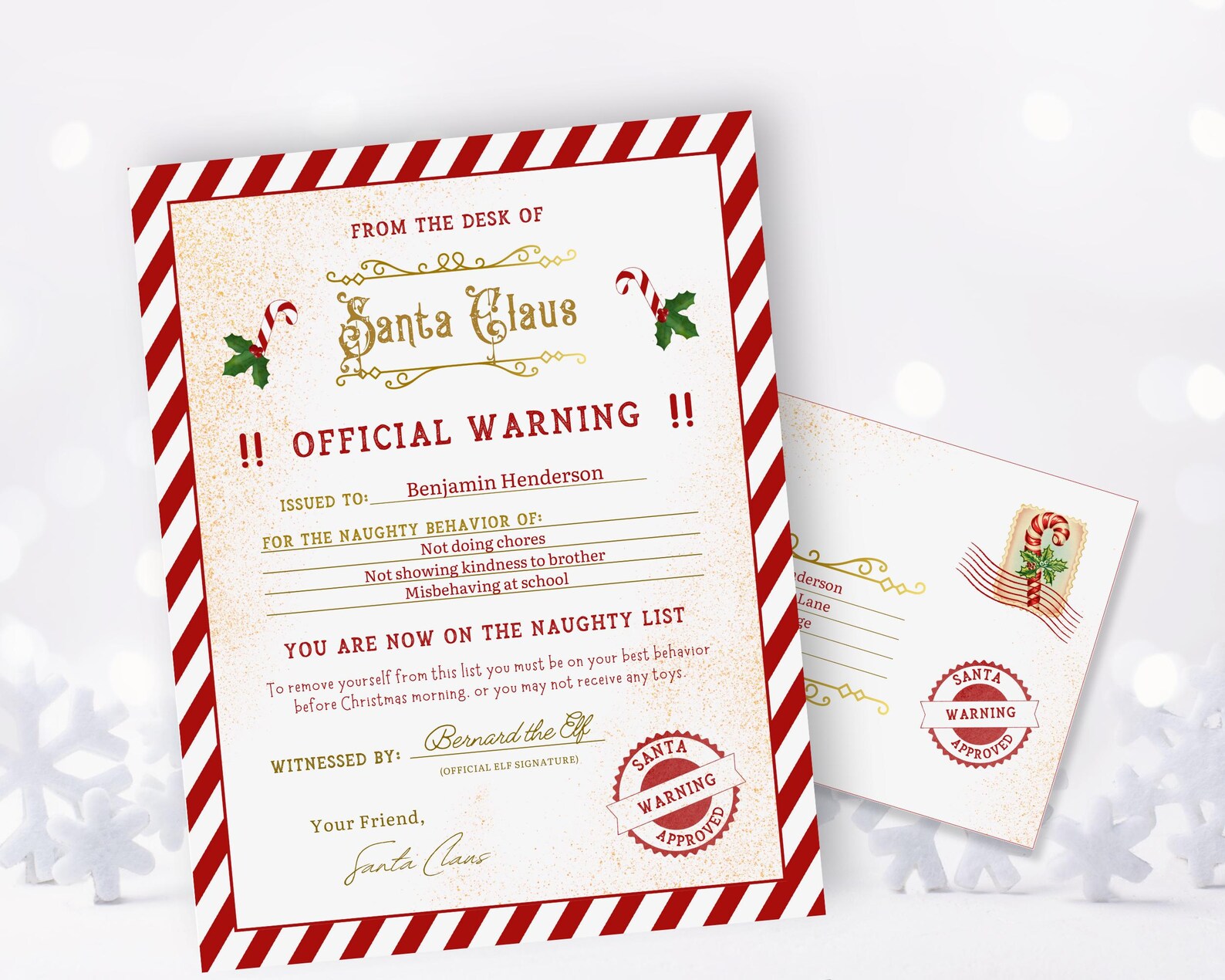 Custom Santa Warning Letter Printable Santa Naughty List Certificate
