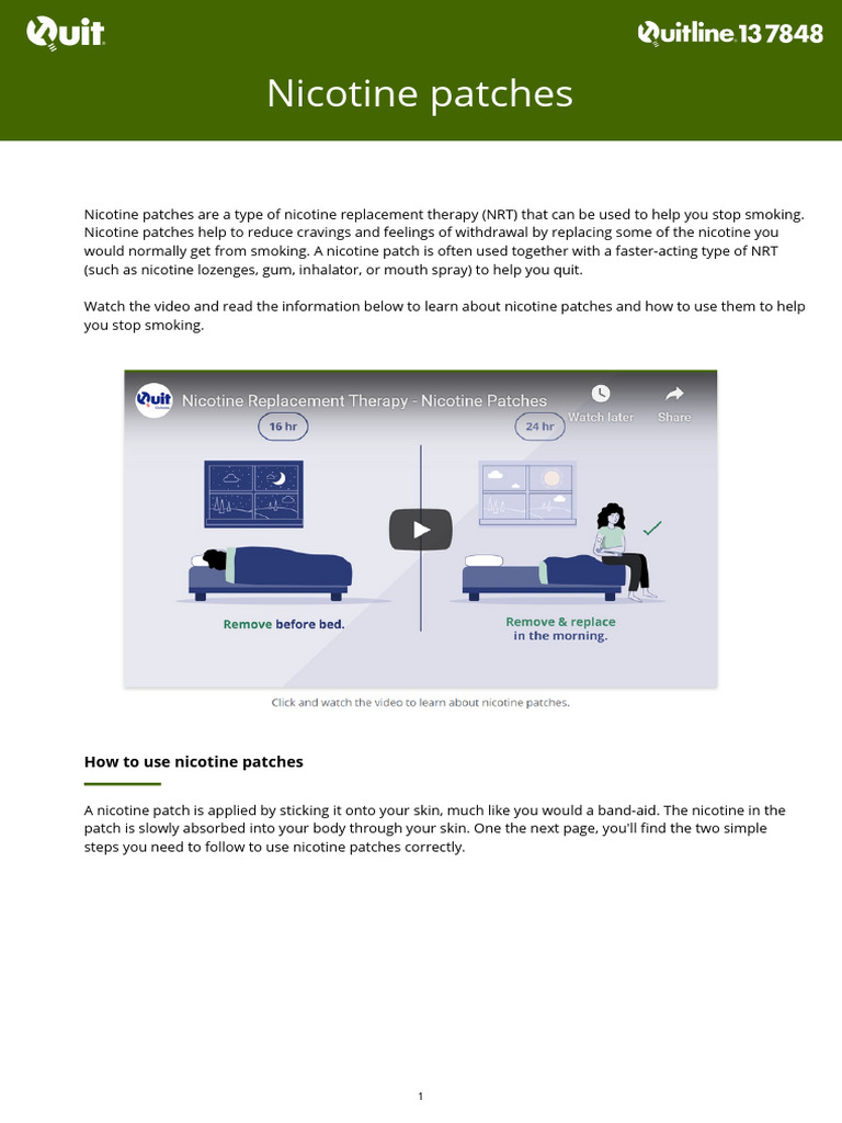 Nicotine Patches Factsheet PDF Nicotine Smoking Cessation