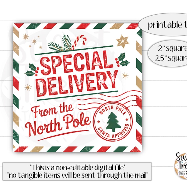 Printable North Pole Special Delivery Gift Tag Santa #39 s Etsy