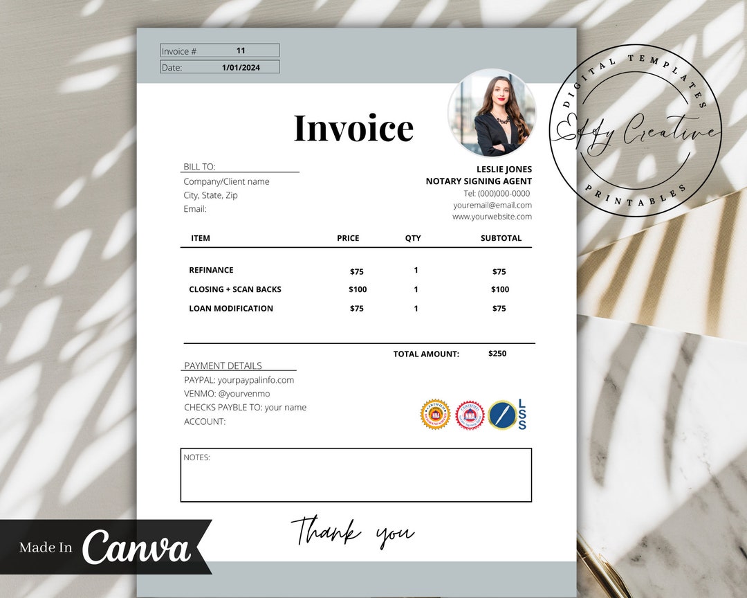 Notary Invoice Template Editable Invoice for Notaries Notary Etsy